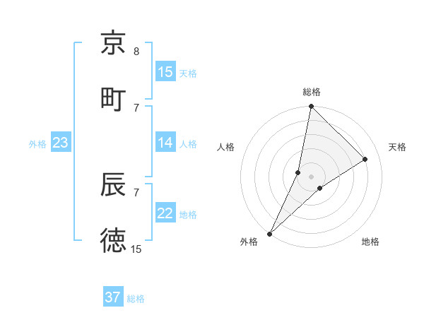 京町 辰徳さんの外格は23画の5点!