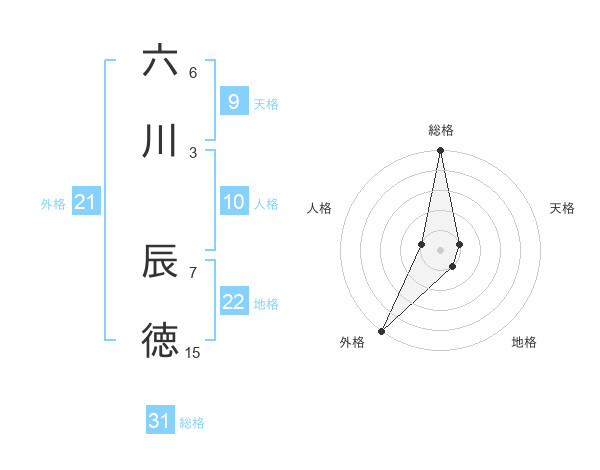 六川 辰徳さんを姓名の画数から五運を鑑定