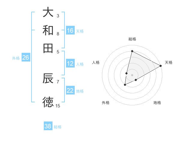 大和田 辰徳さんの総格は38画の4点!