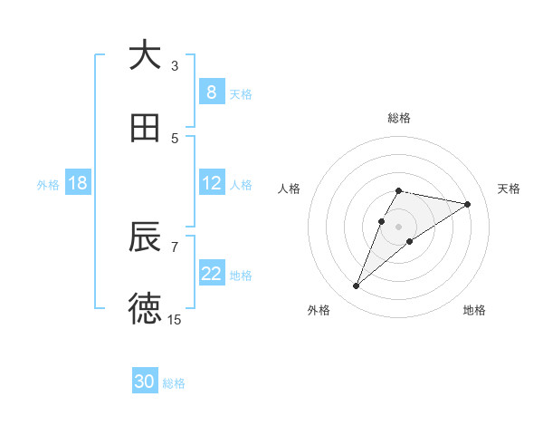 大田 辰徳さんを姓名の画数から五運を鑑定