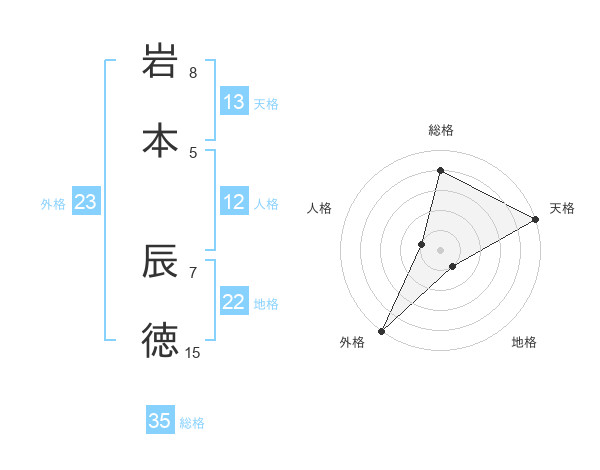 岩本 辰徳さんを姓名の画数から五運を鑑定