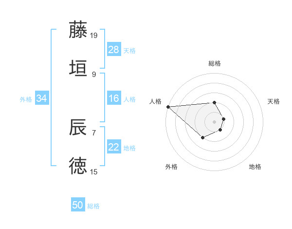 藤垣 辰徳さんの総格は50画の2点!
