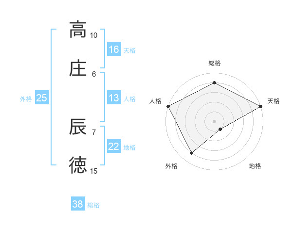 高庄 辰徳さんを姓名の画数から五運を鑑定