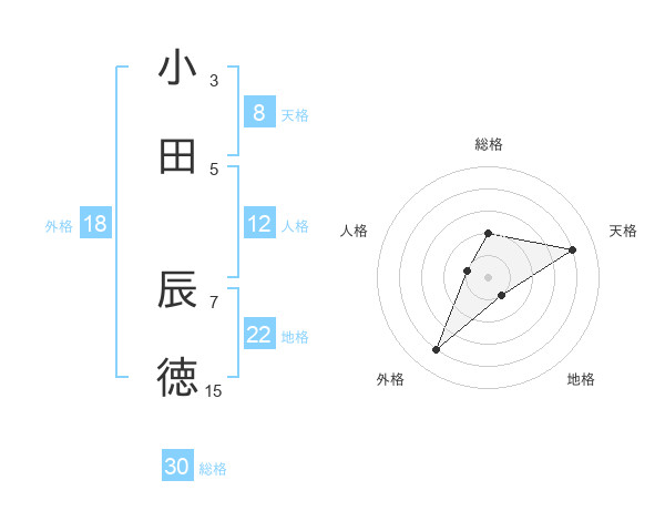 小田 辰徳さんの総格は30画の2点