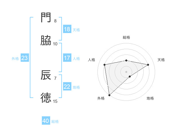 門脇 辰徳さんを姓名の画数から五運を鑑定