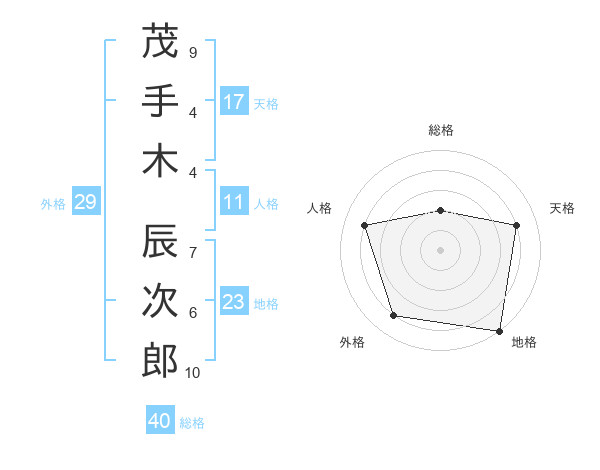 茂手木 辰次郎さんを姓名の画数から五運を鑑定