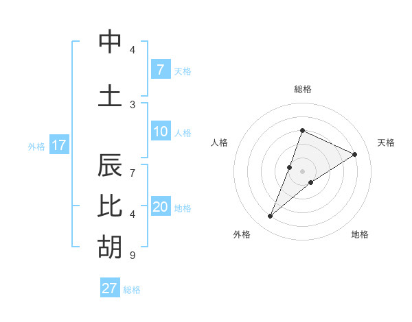 中土 辰比胡さんの外格は17画の4点!