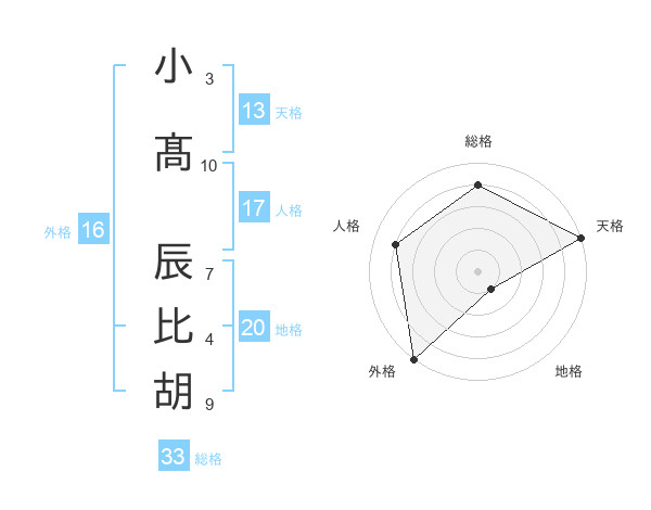 小髙 辰比胡さんを姓名の画数から五運を鑑定