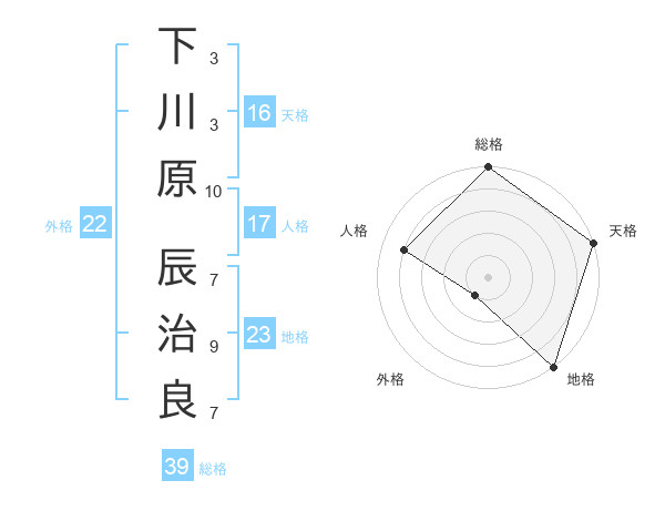 下川原 辰治良さんを姓名の画数から五運を鑑定