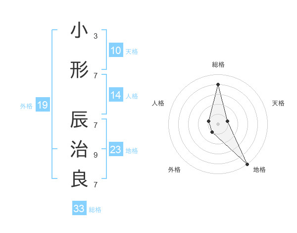 小形 辰治良さんの総格は33画の4点!