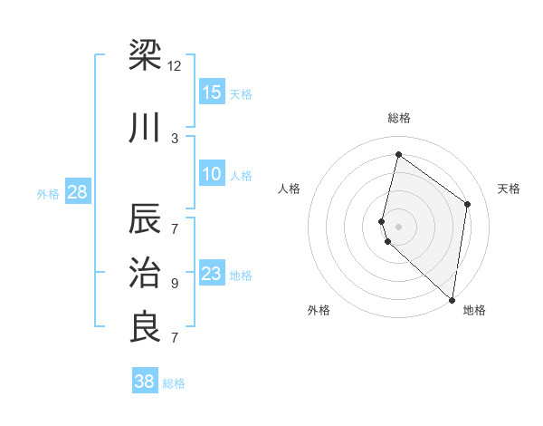 梁川 辰治良さんを姓名の画数から五運を鑑定