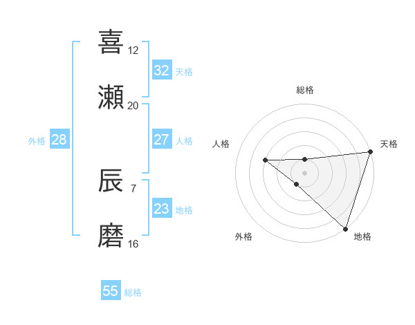 喜瀬 辰磨さんの天格は32画の5点!
