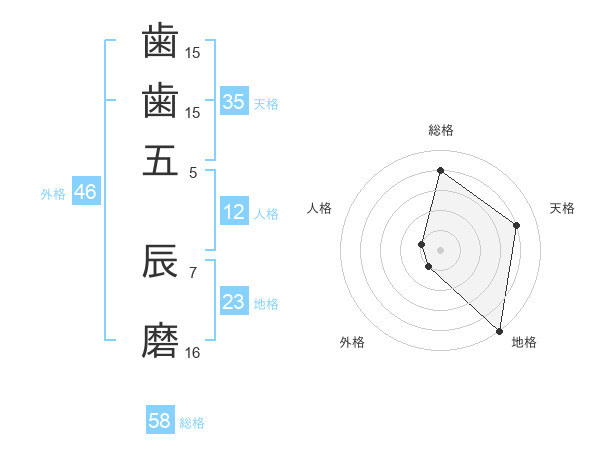 歯歯五 辰磨さんの総格は58画の4点!