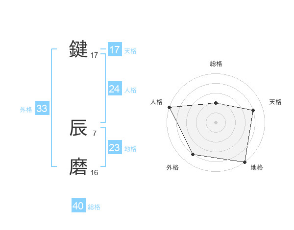 鍵 辰磨さんを姓名の画数から五運を鑑定