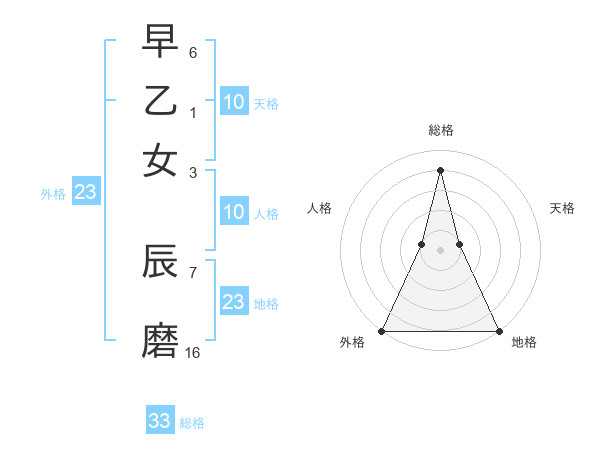早乙女 辰磨さんの総格は33画の4点