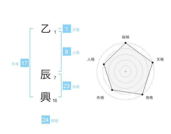 乙 辰興さんの総格は24画の5点!