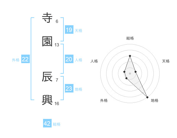 寺園 辰興さんの総格は42画の3点!