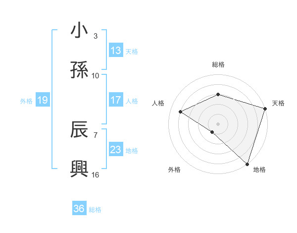小孫 辰興さんの天格は13画の5点!