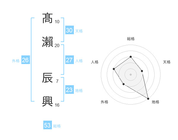 髙瀨 辰興さんを姓名の画数から五運を鑑定