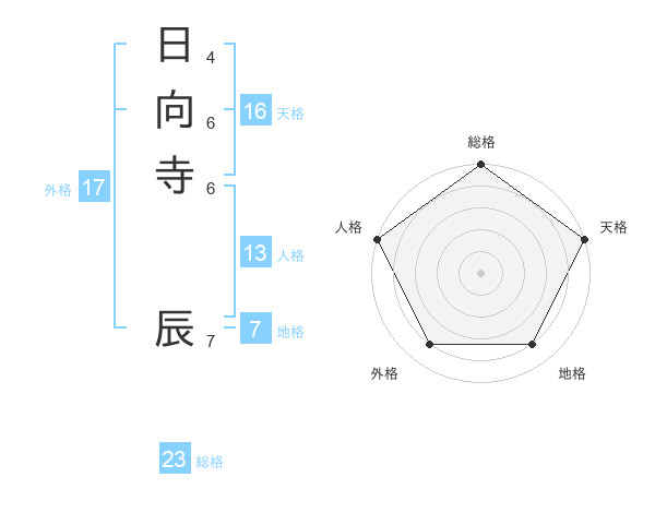 日向寺 辰さんの総格は23画の5点!