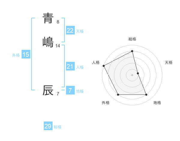 青嶋 辰さんを姓名の画数から五運を鑑定