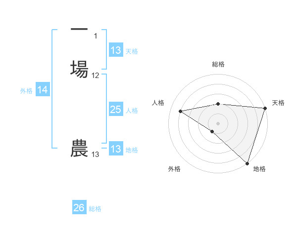 一場 農さんの地格は13画の5点!