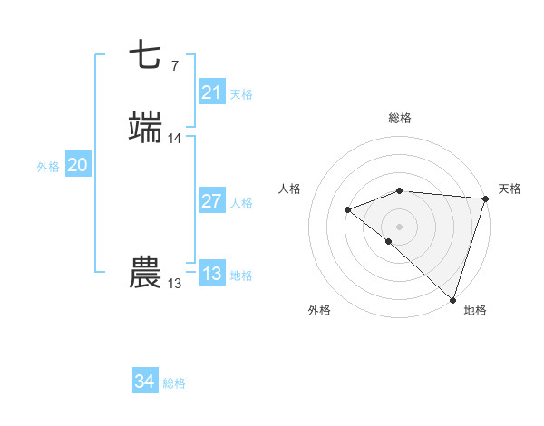 七端 農さんの総格は34画の2点!