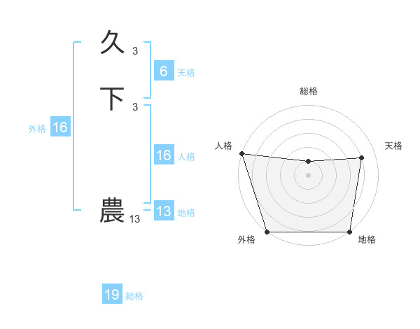 久下 農さんの総格は19画の1点!