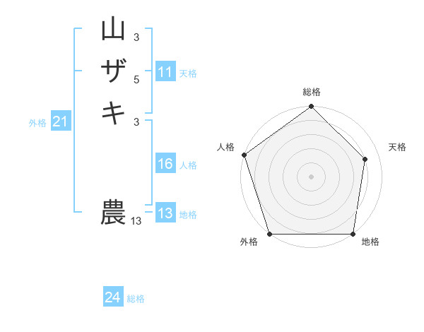 山ザキ 農さんを姓名の画数から五運を鑑定