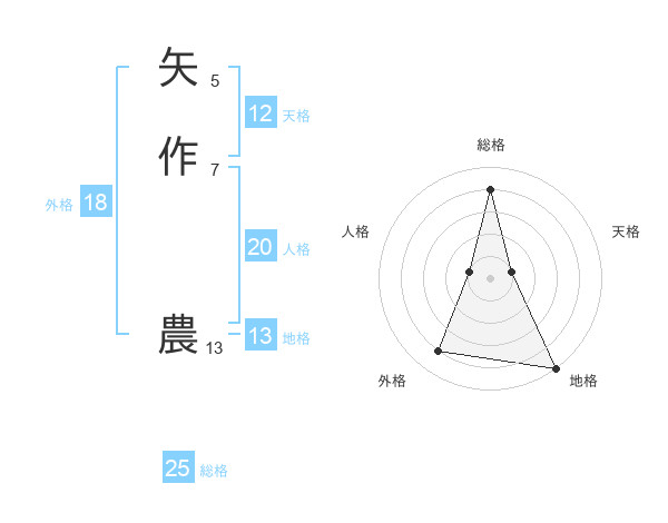 矢作 農さんの総格は25画の4点!