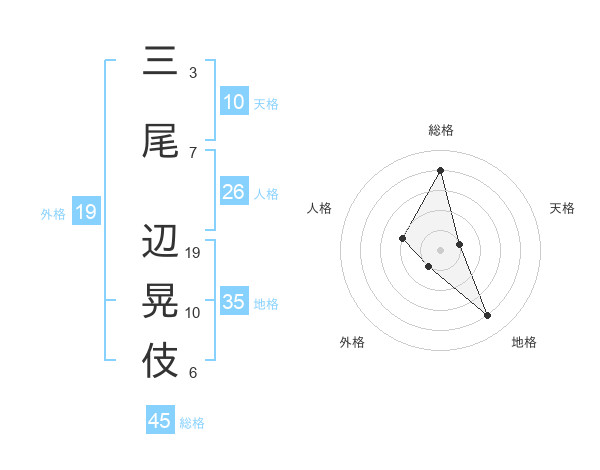 三尾 辺晃伎さんを姓名の画数から五運を鑑定
