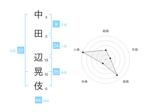 中田 辺晃伎さんを姓名の画数から五運を鑑定