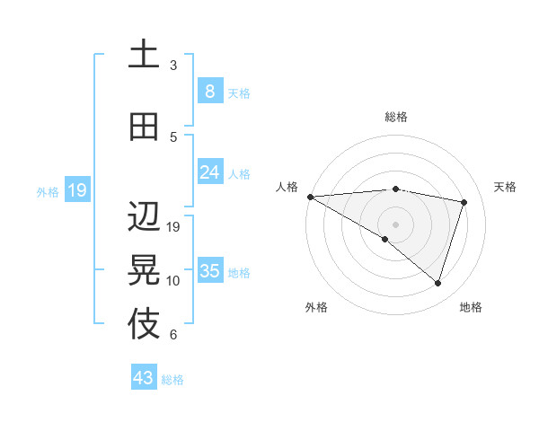 土田 辺晃伎さんを姓名の画数から五運を鑑定