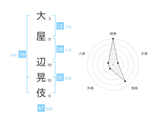 大屋 辺晃伎さんを姓名の画数から五運を鑑定