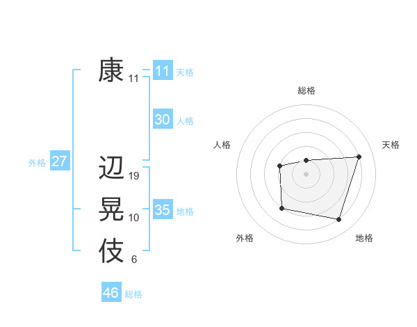 康 辺晃伎さんを姓名の画数から五運を鑑定