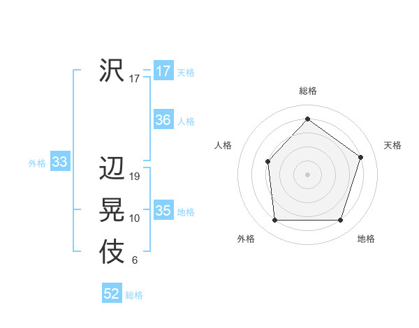 沢 辺晃伎さんの総格は52画の4点!