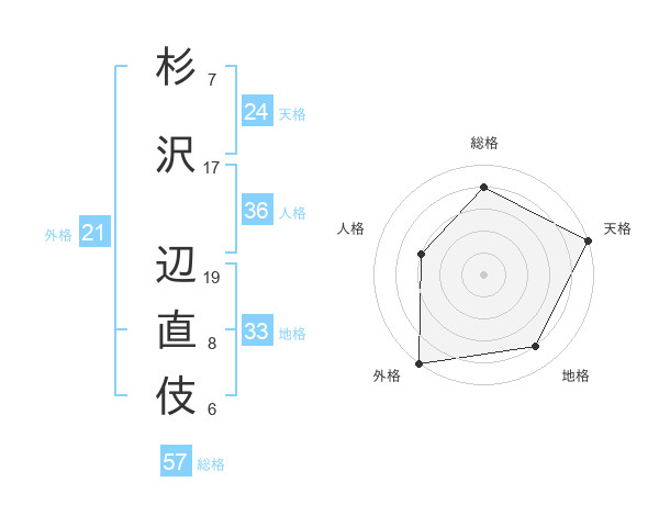 杉沢 辺直伎さんを姓名の画数から五運を鑑定