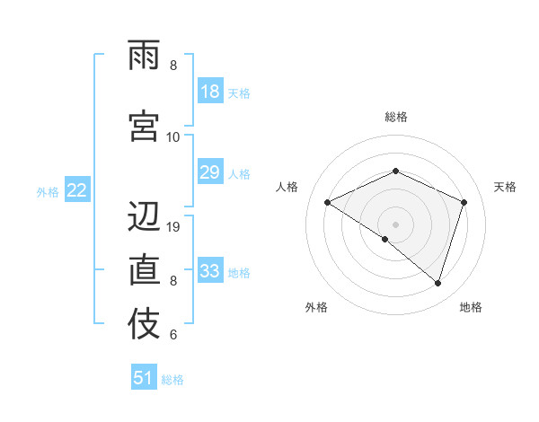 雨宮 辺直伎さんを姓名の画数から五運を鑑定