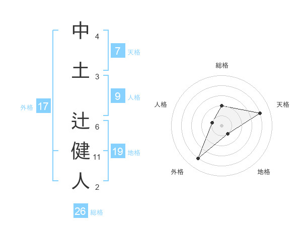 中土 辻健人さんを姓名の画数から五運を鑑定