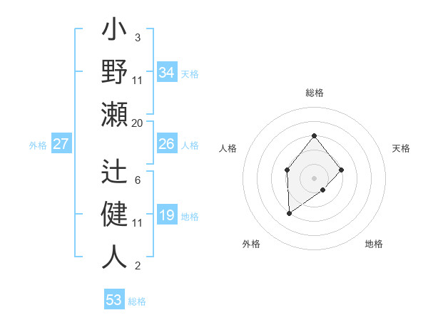 小野瀬 辻健人さんを姓名の画数から五運を鑑定