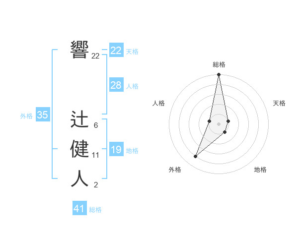 響 辻健人さんの総格は41画の5点!