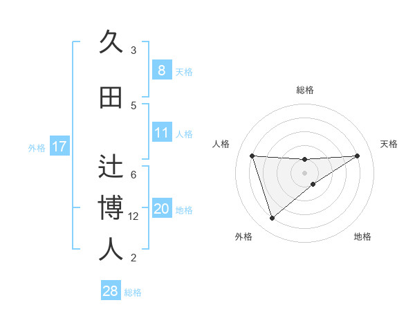 久田 辻博人さんの総格は28画の1点!
