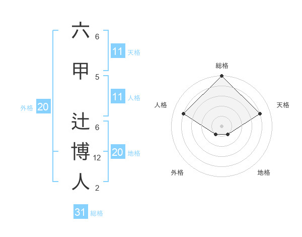 六甲 辻博人さんの総格は31画の5点!