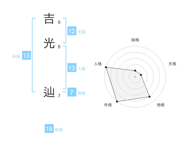 吉光 辿さんの外格は13画の5点!