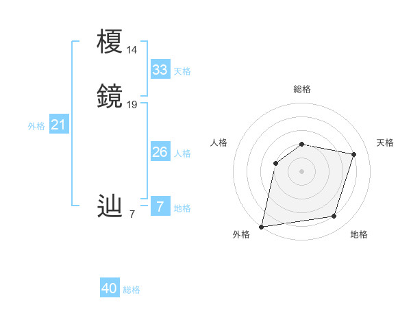 榎鏡 辿さんの天格は33画の4点!