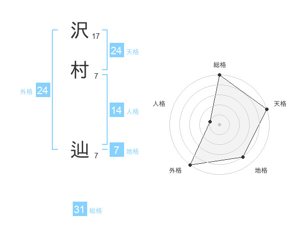 沢村 辿さんの総格は31画の5点!