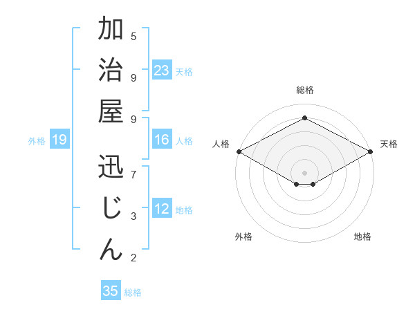 加治屋 迅じんさんの総格は35画の4点!