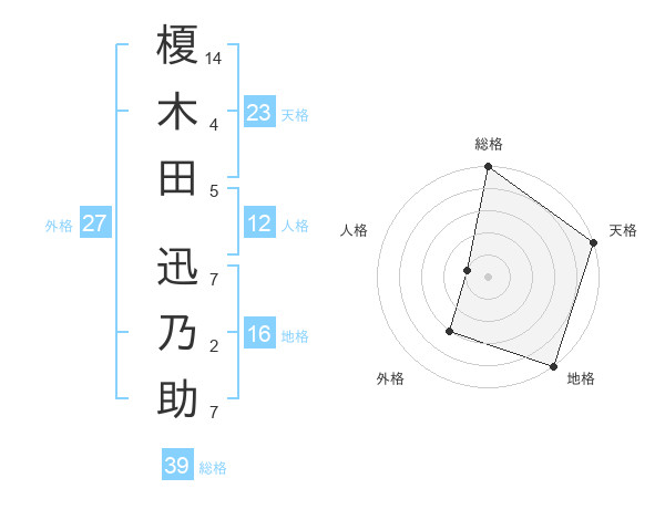 榎木田 迅乃助さんを姓名の画数から五運を鑑定