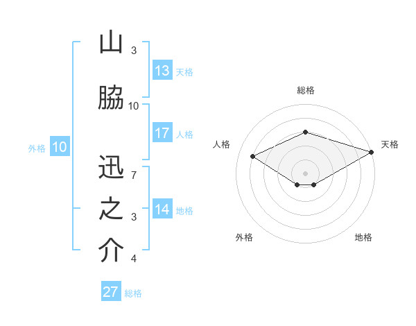山脇 迅之介さんを姓名の画数から五運を鑑定