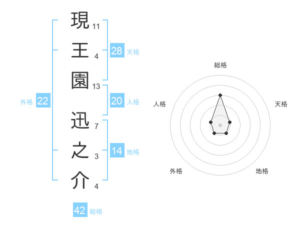 現王園 迅之介さんの総格は42画の3点!
